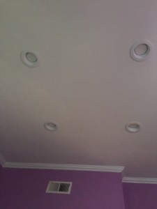 I patched up some minor scuffs I had made while removing the popcorn. This is normal. Especially, for a first timer like myself. Then I added some texture. I used about 2 cans of Homax Wall Texture in “orange peel”. And then I painted the ceiling with Behr Paint & Primer In One, in the color Ultra Pure White. About the crown molding that’s another project I’m not ready to tackle just yet. A family friend installed it for us at a discounted price. Score! I hope you all enjoy this post because I sure did! I was able to cut cost and the room looks great.